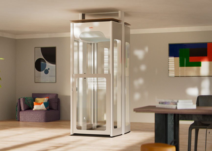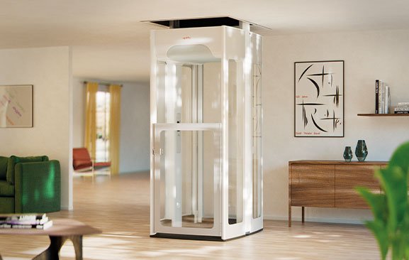 Den kompakte og elegante innendørs heisen er for én eller to personer. Maksimal komfort på et minimum av plass.